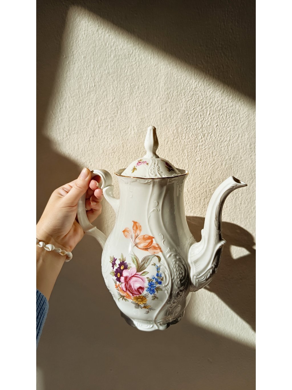 Jemný reliéf typický pro tvar Bernadotte v kombinaci s ruční malbou růží vytváří nadčasový celek, který si dlouhodobě drží svou hodnotu. Právě tento dekor patří mezi sběratelsky oblíbené série českého porcelánu.