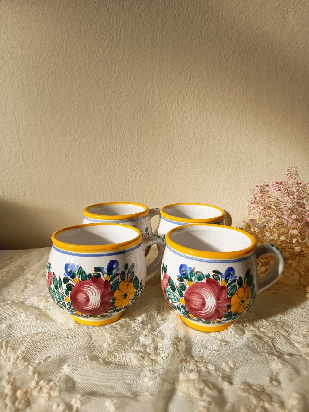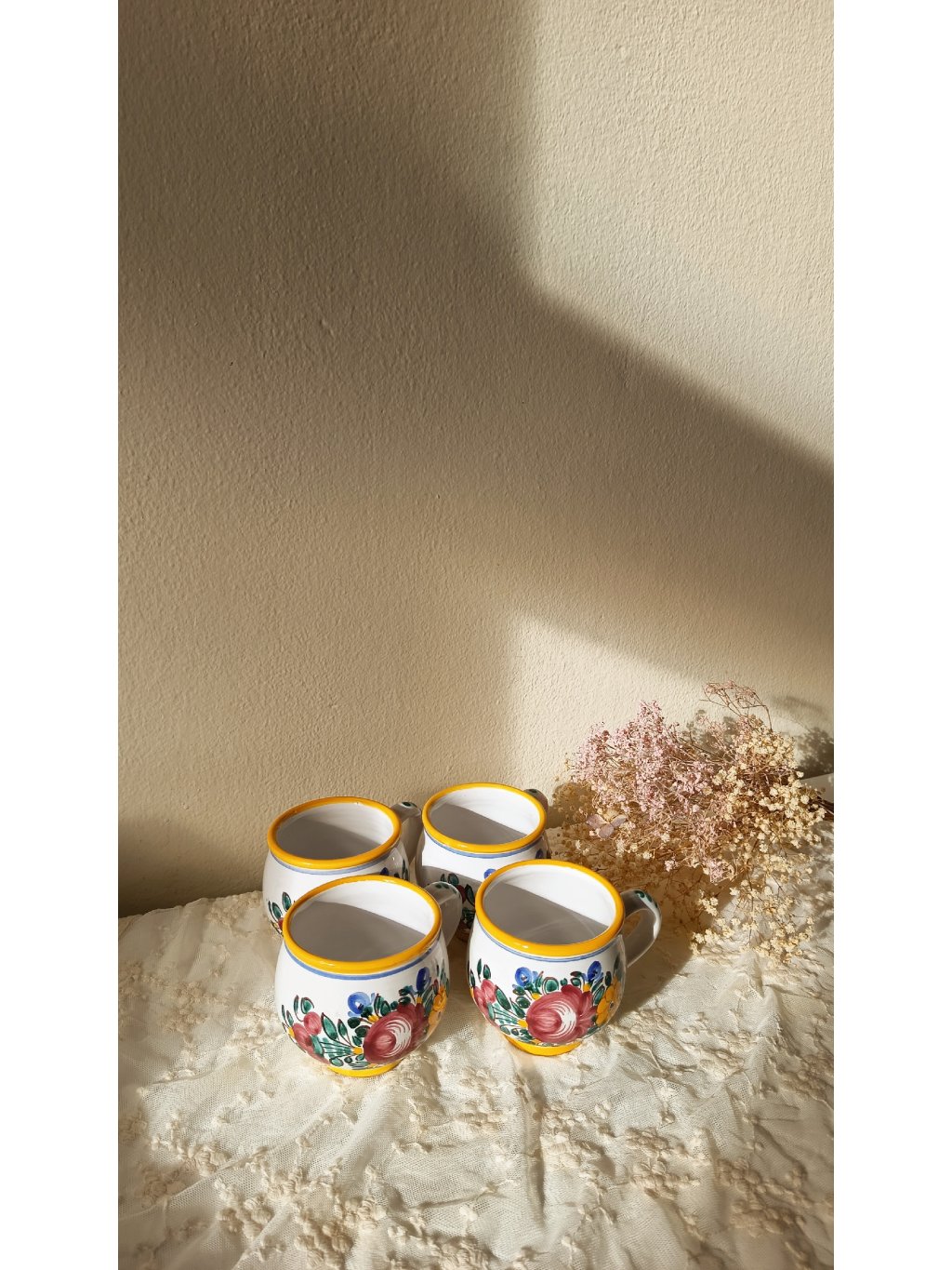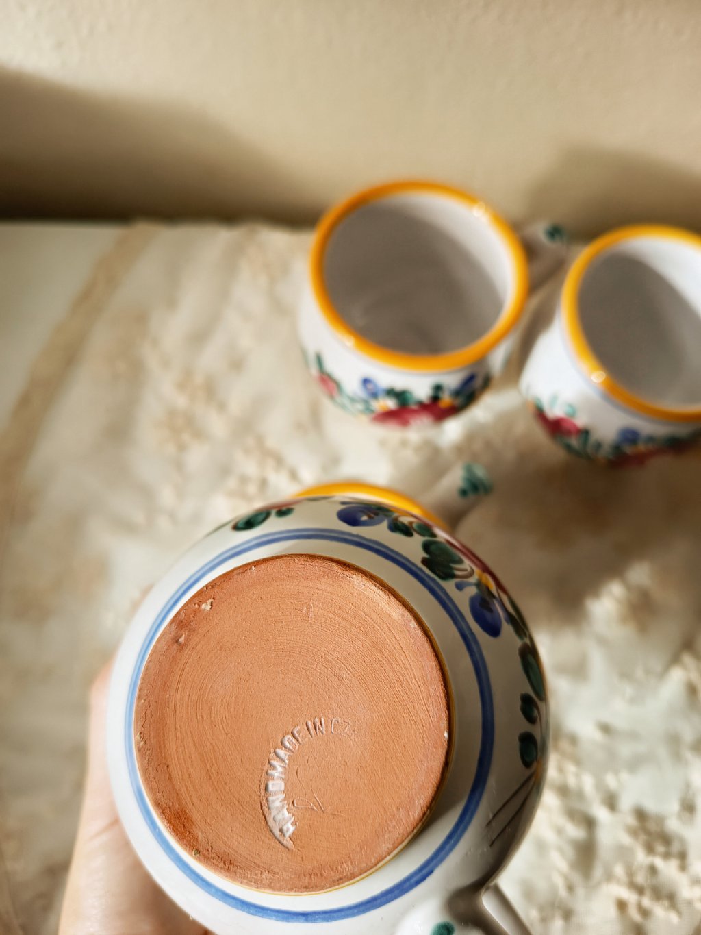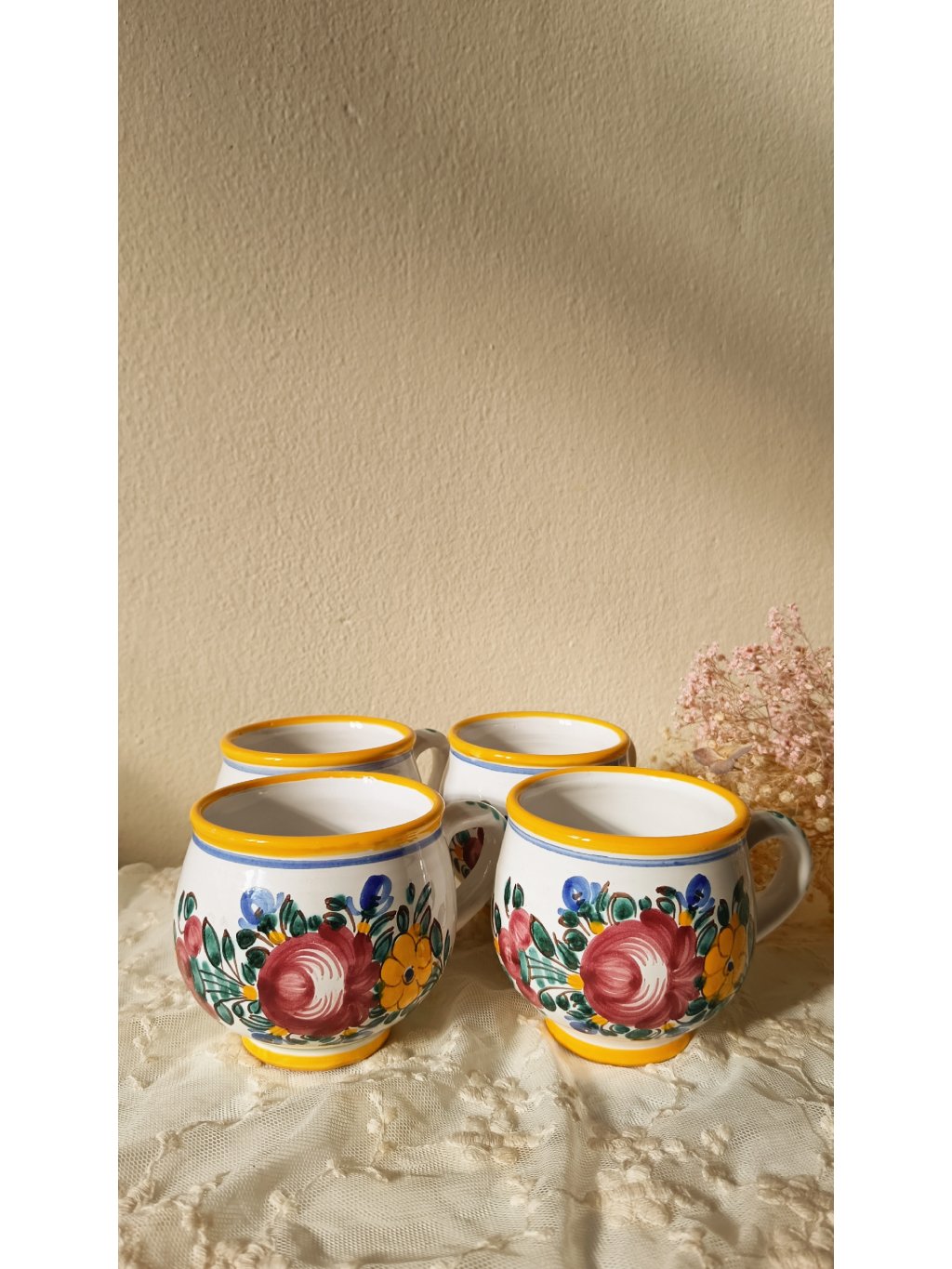 Autentická tupeská keramika z Moravy, která v sobě nese tradici, řemeslo a nostalgii venkovských kuchyní. Každý hrnek je ručně vyráběný a zdobený typickými květinovými motivy a žlutými linkami, které jsou pro Tupesy ikonické.